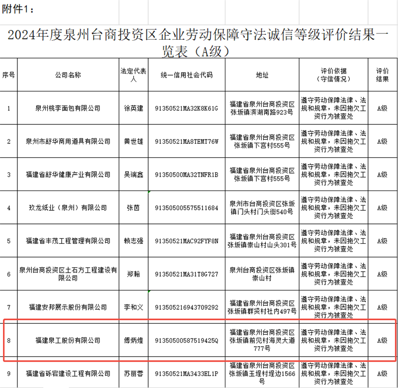 Gần đây, theo quy định trong "Thông báo của Cục An ninh Sinh kế Nhân dân thuộc Ủy ban Quản lý Khu Đầu tư Tuyền Châu Đài Loan về việc Thực hiện Đánh giá Đánh giá Tính Liêm chính và Tuân thủ Luật An toàn Lao động Doanh nghiệp năm 2024" (Quantai Guanminshengwen [2025] Số 11), sau khi xem xét nghiêm ngặt, FQuangong Machinery Co.,Ltd (sau đây gọi tắt là "QGM Co., Ltd.") đã được đánh giá là "Tuân thủ và Tuân thủ Luật An toàn Lao động Doanh nghiệp 2024 và Đánh giá liêm chính doanh nghiệp hạng A”, trở thành 1 trong 25 doanh nghiệp trên địa bàn huyện nhận được vinh dự này.