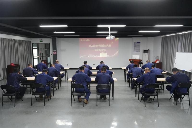 Cuộc thi bao gồm hai phần: thi viết lý thuyết và thi thực hành. Điểm lý thuyết chiếm 20% và điểm thực hành chiếm 80%, kiểm tra toàn diện chất lượng toàn diện của thợ hàn. Đúng 9h, phần thi lý thuyết bắt đầu đúng giờ tại lớp huấn luyện Khu I Khu B, bao gồm các kiến thức chuyên môn như công nghệ hàn, quy định an toàn, bảo trì thiết bị. Các thí sinh bình tĩnh trả lời câu hỏi, thể hiện nền tảng lý thuyết vững chắc.