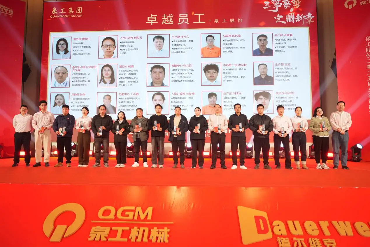Chiều ngày 3 tháng 2,Công ty TNHH Máy móc Phúc Kiến Quangongđã tổ chức Lễ tổng kết và trao giải thường niên năm 2025 cũng như Lễ đón năm mới tại Khách sạn Danh dự Tuyền Châu Đông Hải, với chủ đề "Ba động cơ hội tụ, thiết lập một chương mới". Lãnh đạo công ty, đại diện khách hàng chủ chốt, toàn thể nhân viên và gia đình họ cùng nhau ôn lại chặng đường làm việc chăm chỉ, chia sẻ những thành quả phát triển và hướng tới một tương lai tươi sáng.