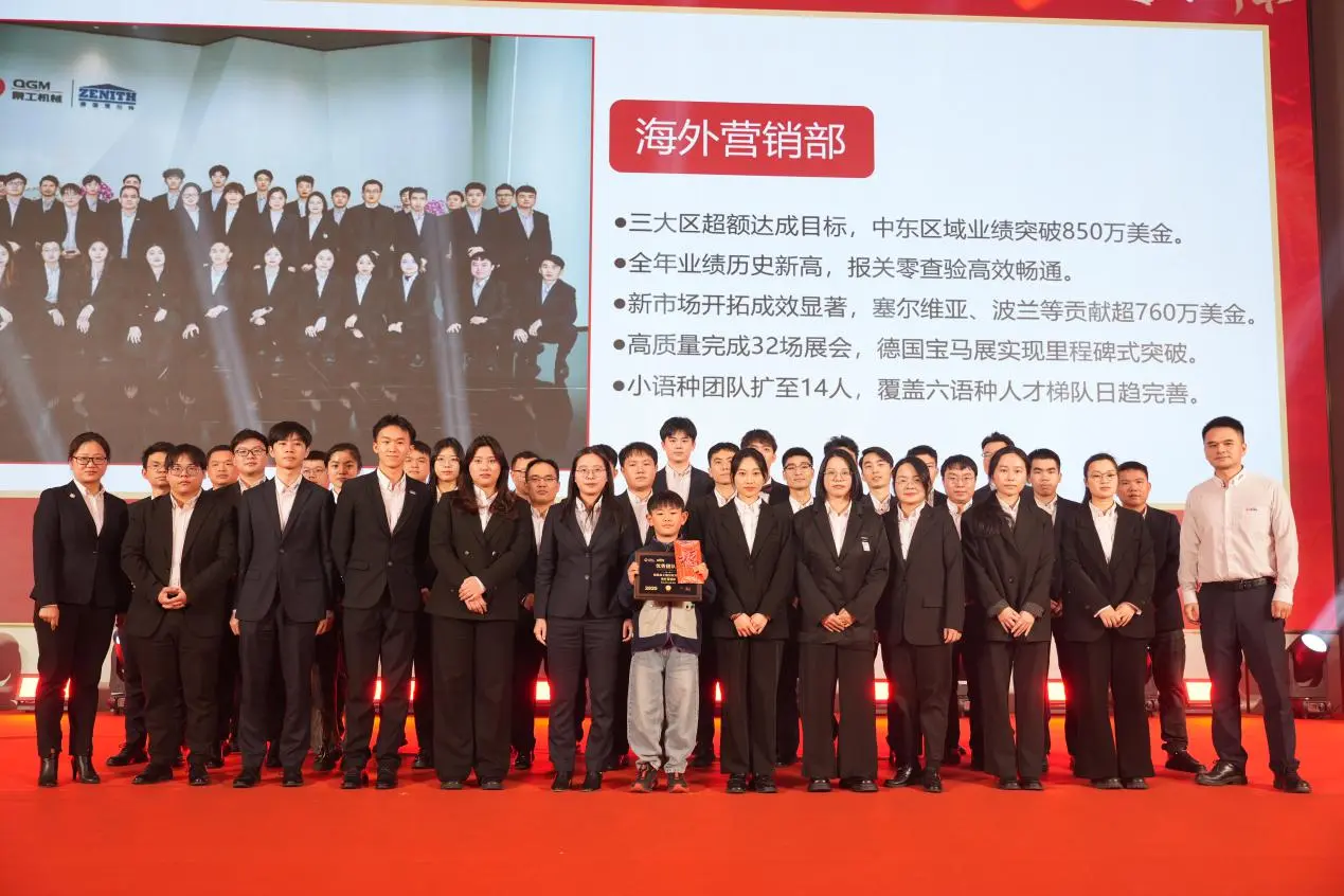 Sau đó, Fu Xinyuan, Tổng Giám đốc Công ty TNHH Quangong Machinery, đã có bài phát biểu kết luận. Ông chỉ ra rằng trong bối cảnh tình hình toàn cầu phức tạp và luôn thay đổi, sự phát triển vững chắc của công ty không thể tách rời sự nỗ lực chung của toàn thể nhân viên. Vào năm 2025, nhóm tiếp thị ở nước ngoài là nhóm đầu tiên đạt được mục tiêu hoạt động hàng năm và thị trường trong nước đã tích cực thích ứng với tình hình thay đổi, tạo thành công các dự án kiểu mẫu ở một số thành phố trọng điểm và giành được sự công nhận cao từ khách hàng. Sắp tới, công ty sẽ chính thức đẩy mạnh chiến lược song song 3 thương hiệu: Cenit tập trung vào thị trường siêu cao cấp, Quangong khai thác sâu thị trường từ trung cấp đến cao cấp và Daorvik phục vụ thị trường tầm trung, liên tục nâng cao năng lực cạnh tranh toàn cầu. Ông cũng bày tỏ lòng biết ơn chân thành đến các đội vẫn sẽ ra tiền tuyến nước ngoài để thực hiện công việc lắp đặt và vận hành trước và sau Tết.