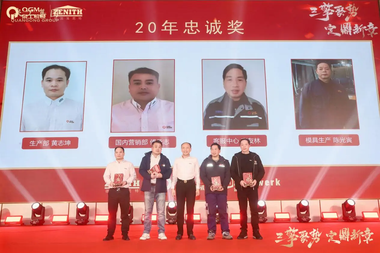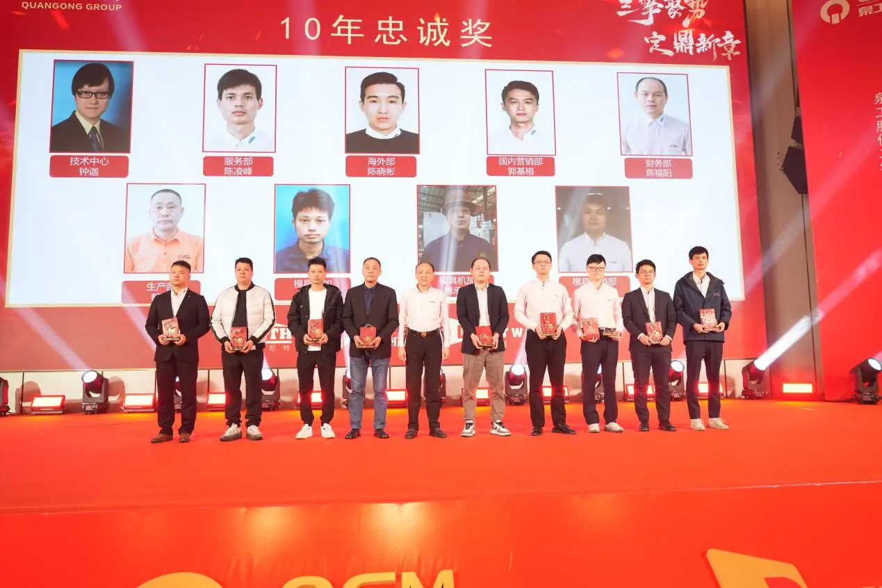 Trong cuộc họp thường niên, một lễ trao giải lớn cũng đã được tổ chức cho các giải thưởng lòng trung thành 10 năm, 20 năm và 30 năm. Một tập thể nhân viên đã sát cánh cùng công ty và cùng nhau phát triển đã bước lên sân khấu, thể hiện đầy đủ nền tảng vững chắc cho sự phát triển vững chắc và văn hóa doanh nghiệp trường tồn của Công ty TNHH Quangong Machinery.
